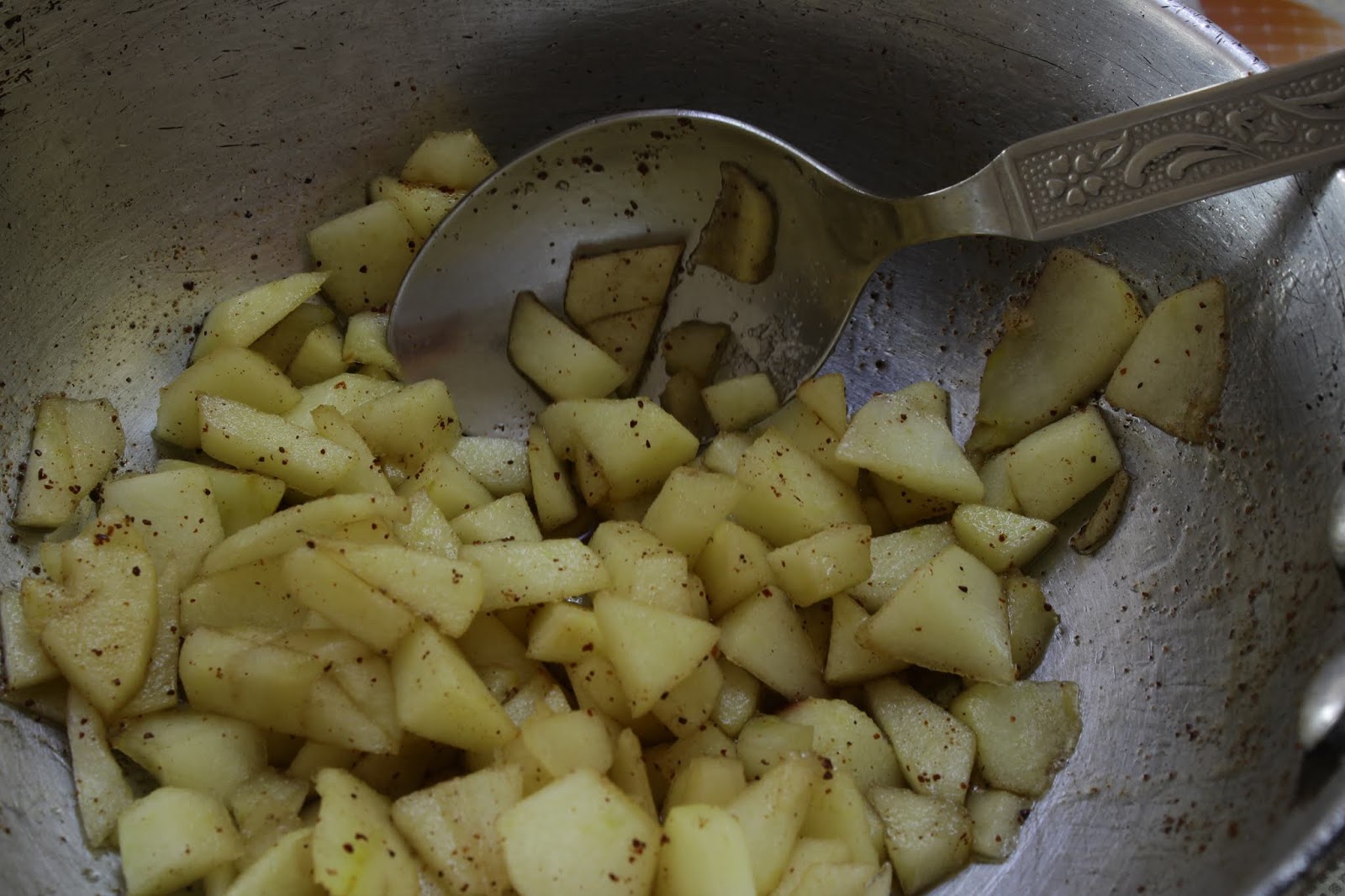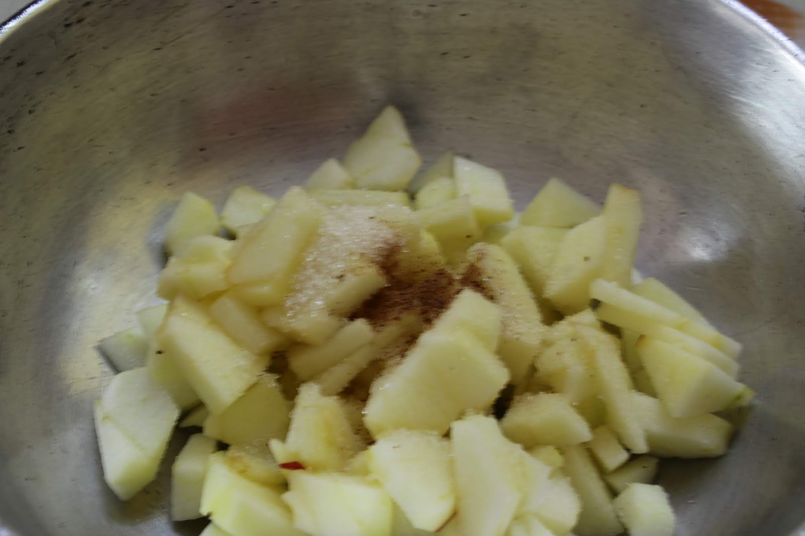 • Mix the chopped apple, cinnamon powder, brown sugar and water in a saucepan and cook on medium heat for 5 minutes till apples are soft