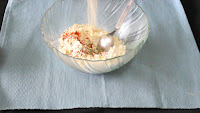 1. Add in the salt, red chili powder, ajwain (carom seeds),  white sesame seeds, hing (asafoetida) Mix until well combined.