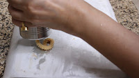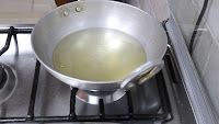 11. Add chaklis to the oil, one at a time.Do not over crowd the kadai. Fry in small  batches of 3-4.