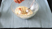 2. Add warm butter  to the flour mixture and rub until flour mix resembles crumbs.