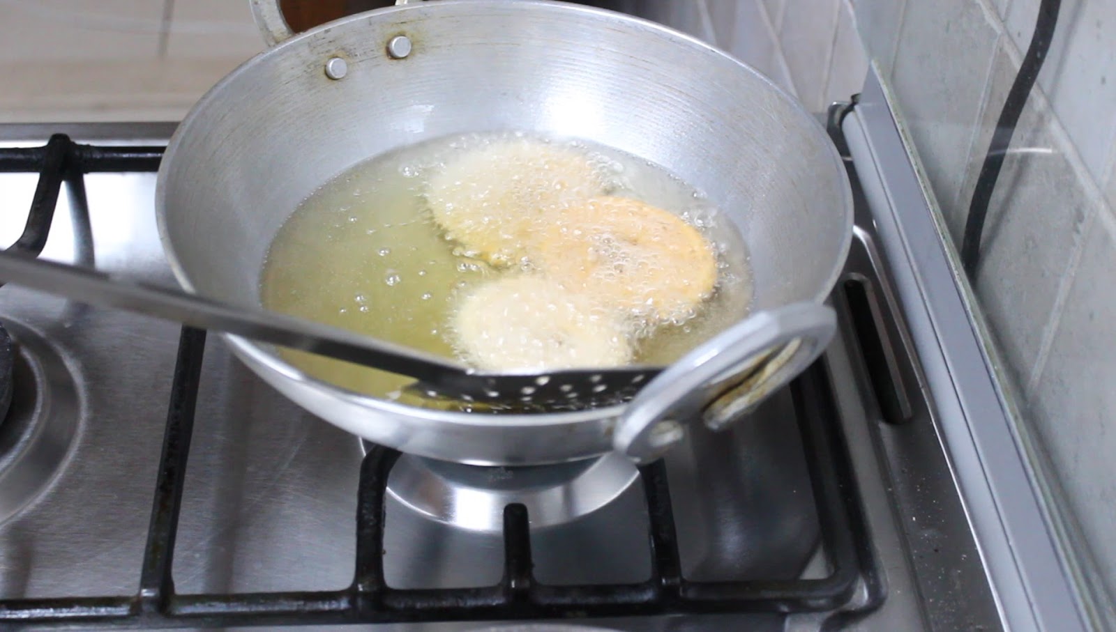 12. Fry on medium heat until the chakli turns golden brown in color.