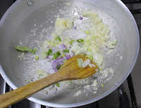 2. In a wok or kadai heat oil and saute finely chopped ginger-garlic
