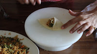 1. Apply water on the edges of each half of sheet. From one sheet two samosas are made.