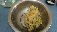 6. Combine the mixture very well. Check to see that there are no big potato pieces left  in the mixture.