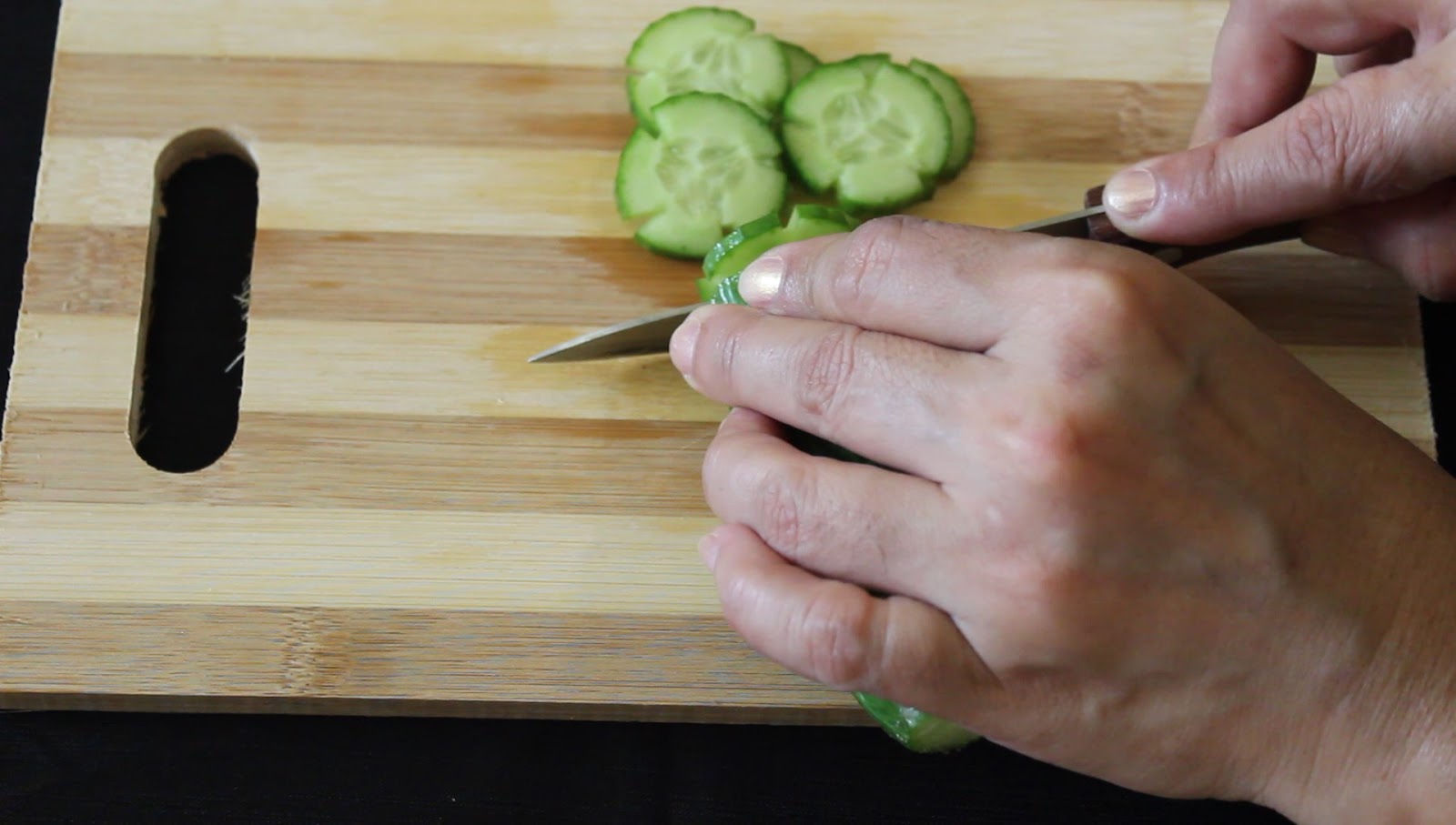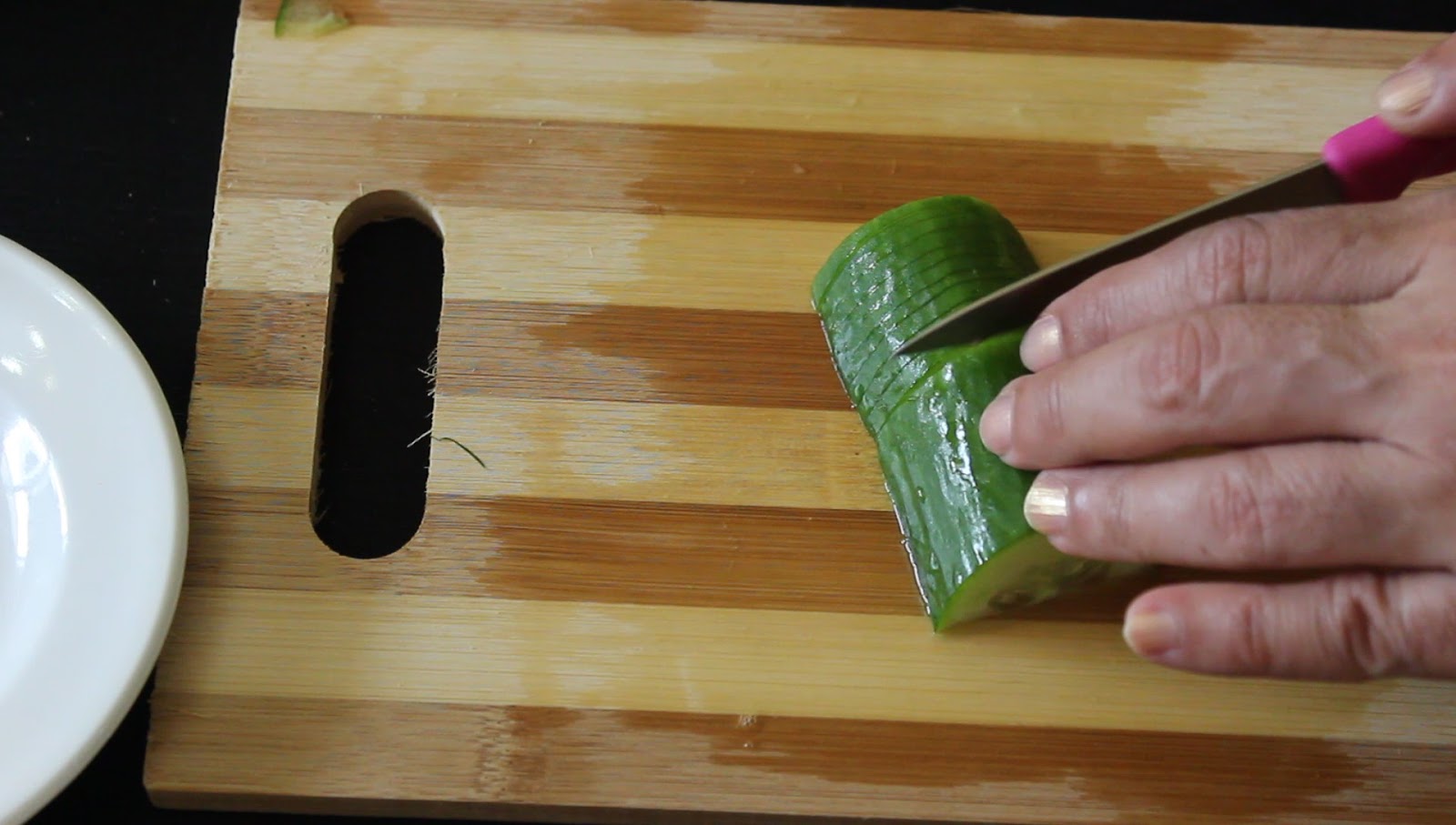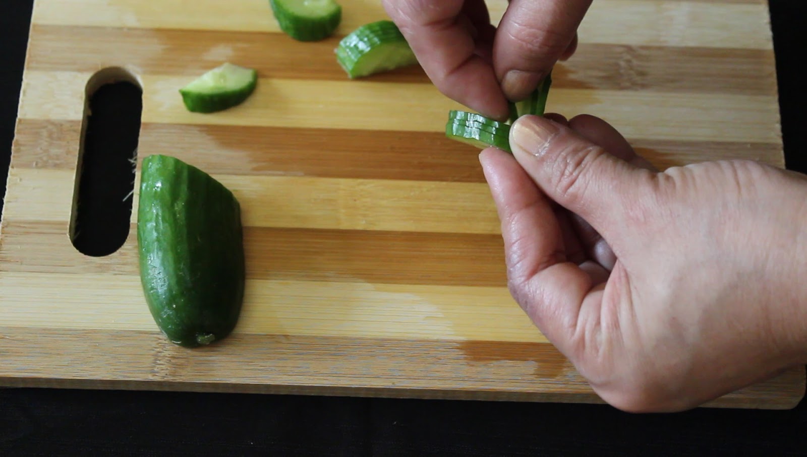 - Take piece of cucumber.