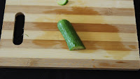 - Take a piece of cucumber that is lengthwise cut into half.