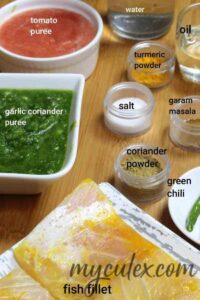 Fish – I used Nile perch variety available locally. You could use fillets of hammour, kingfish, rohu, pomfret or any variety. Recommend using fillets. Marinade it with salt, a bit of lime and turmeric powder for at least twenty minutes.