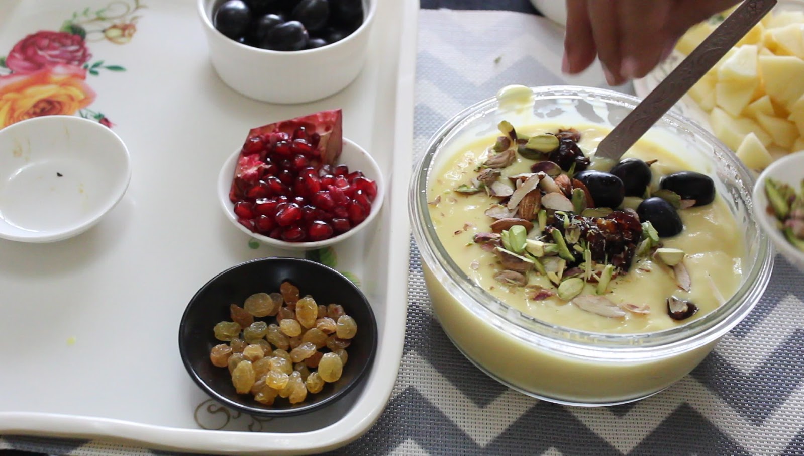 Fruit Custard with Dates & Nuts | How to make Fruit Custard