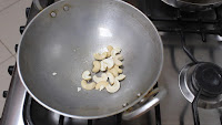 - Similarly add cashewnuts and coconut slivers. Roast and keep aside.