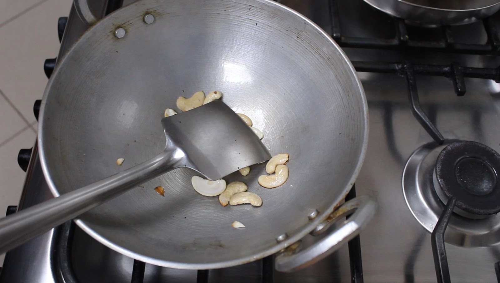 - Add peanuts and roast for a few seconds. Remove and keep aside