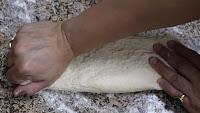 - Dust some flour onto the work surface and roll out each ball. Be gentle with the dough!